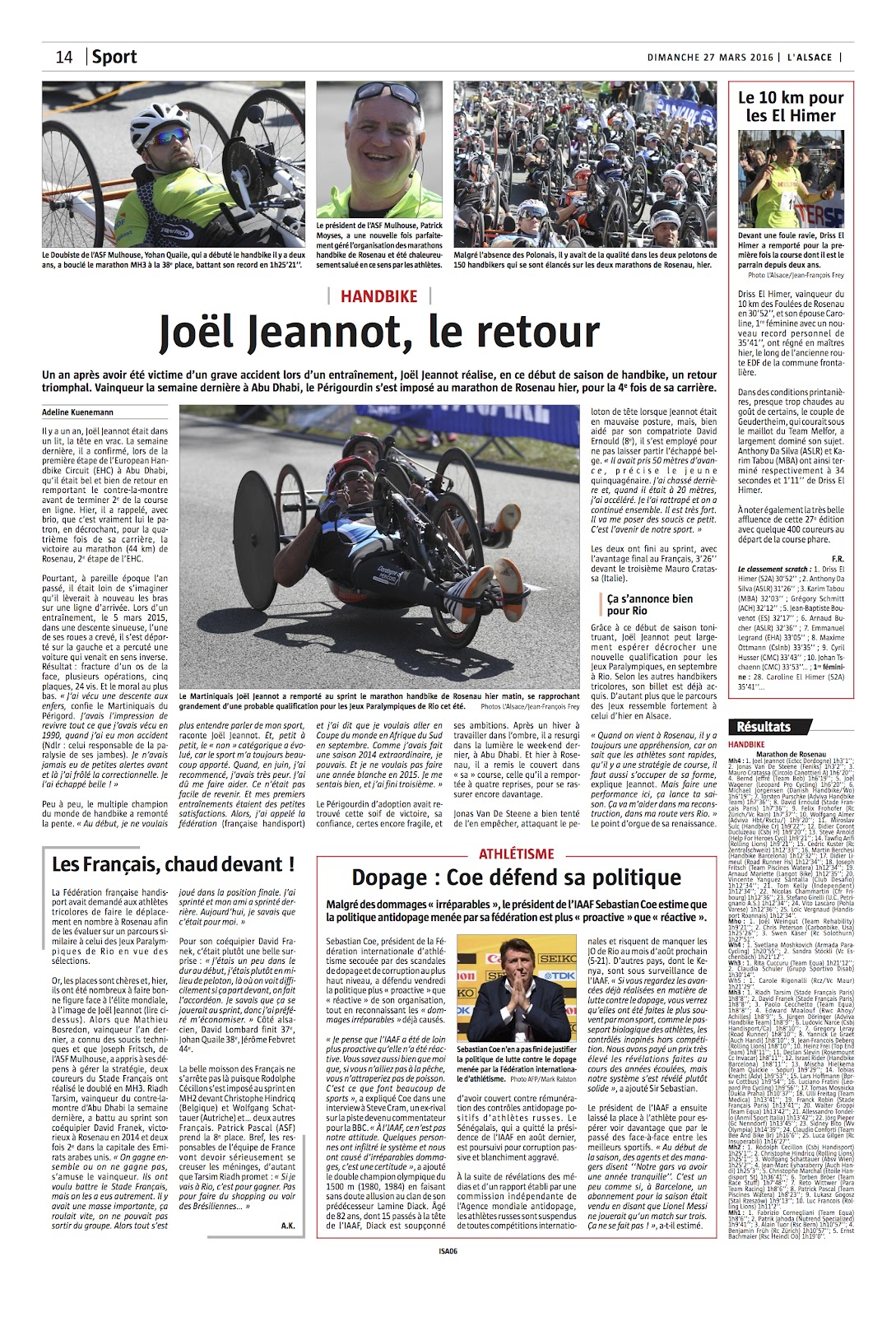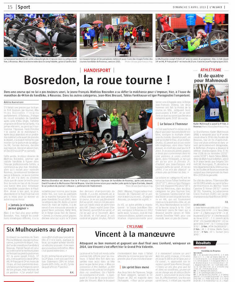 Dans deux jours c'est le grand jour pour l'ASF Mulhouse et bon nombre de handbikeurs. La ourse de Rosenau comptera en 2017, 143 athlètes de 15 nations.