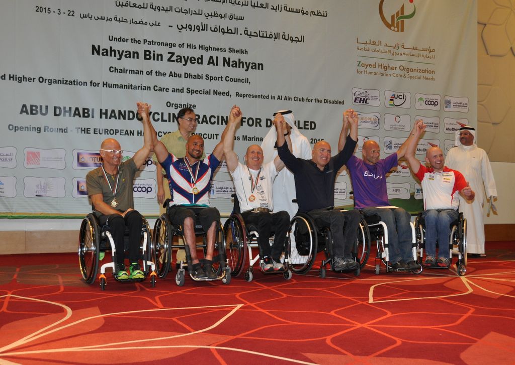 Les Français qui ont fait le déplacement à Abu Dhabi pour la première manche de l’EHC 2016 ont vraiment roulé trés trés fort. En course sur route les victoires de Riadh TARSIM (MH3) devant son copain David FRANEK et de Joël JEANNOT (MH4) qui gagne au sprint devant Rafal WILK. A noter les belles perf de David Franek qui finit 2e du contre la montre également et les places d’honneur de Greg LERAY et Loic VEGNAUD. Résultats de la Road Race. Résultats Time Trial.