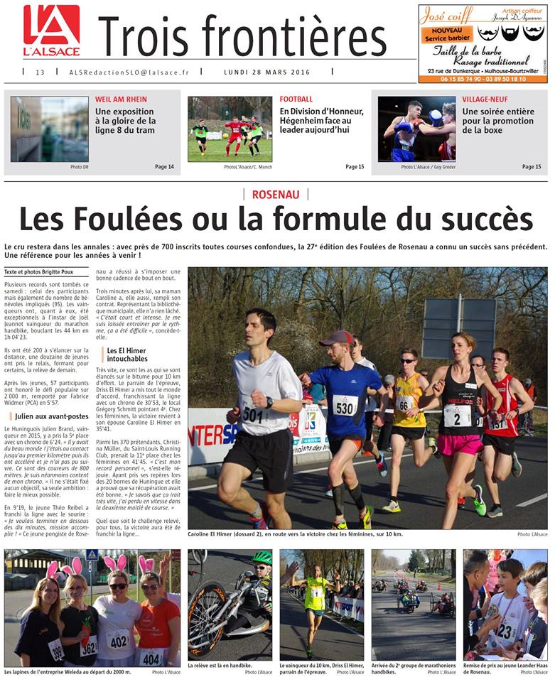 Les inscriptions pour la course de Rosenau 2016 sont ouvertes. Inscriptions.