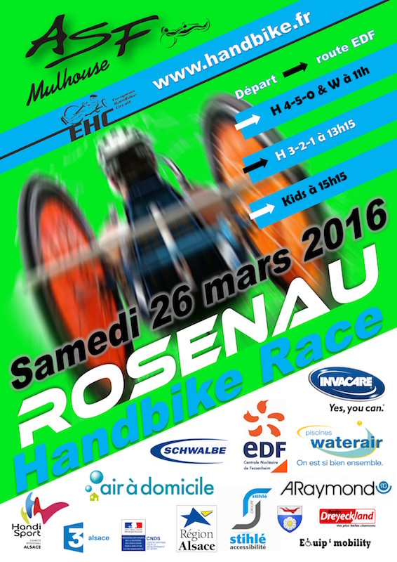 Comme vous le voyez sur l'affiche, cette course de Rosenau 2019 sera une journée de fête du Handbike et une journée souvenir pour notre ami David FRANEK qui vient de nous quitter. On espère que vous serez nombreux à Rosenau le 20 avril 2019