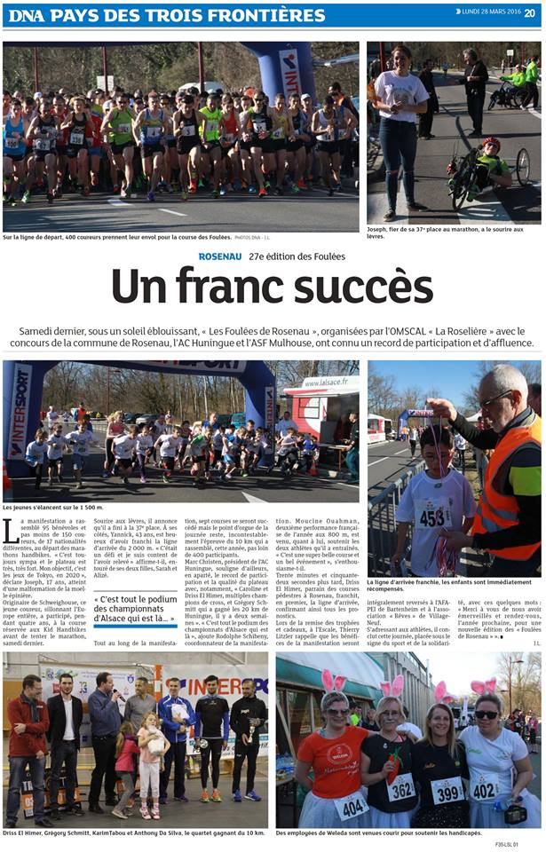 Pour cette édition 2017 de Rosenau, l'ASF Mulhouse sera représenté par 21 athlètes dans les différentes courses de handbike. Ce nombre impressionnant d'athlètes constitue un record de participants pour un seul club.